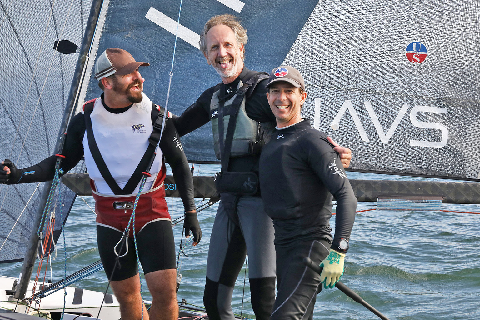 The final then has the best 10 boats in a best of 3 races. We managed to win the final with a 3,1,2 scorecard. The team is only the 3 skiff in history to achieve a back-to-back series win.