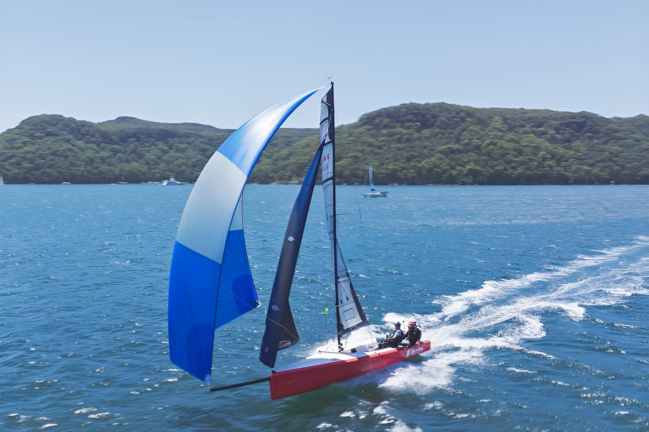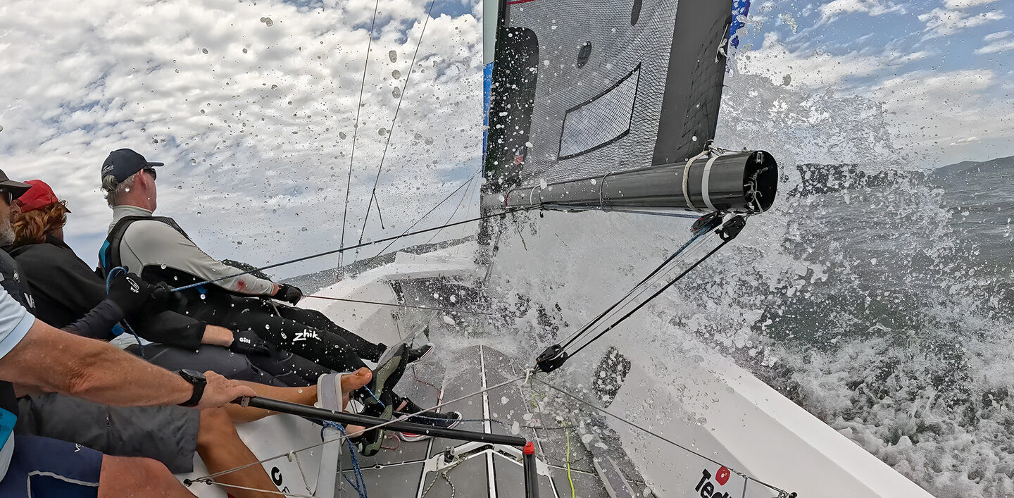 The broad lines and long chines give her a lot of form stability. This means the boat weight adds enormously to the righting moment, while other sports boats that sail upright rely solely on crew weight for stability.”