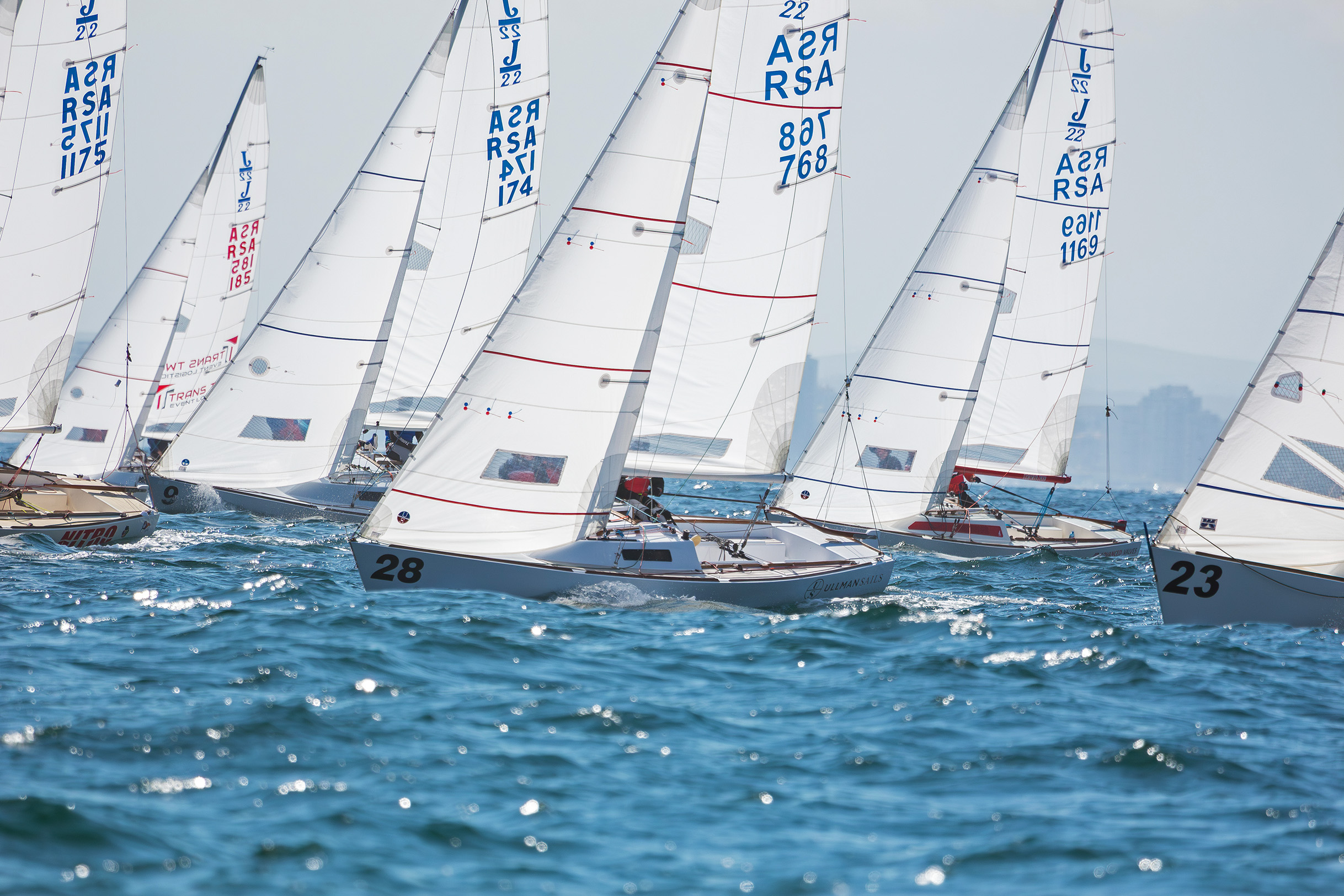 At Ullman, our first step was to update the J/22 sail designs to align with the latest class rules and begin testing. After encouraging results at the J/22 Nationals in June, and with a freshly fitted transom, our boat was brought down to Cape Town to begin training in earnest.