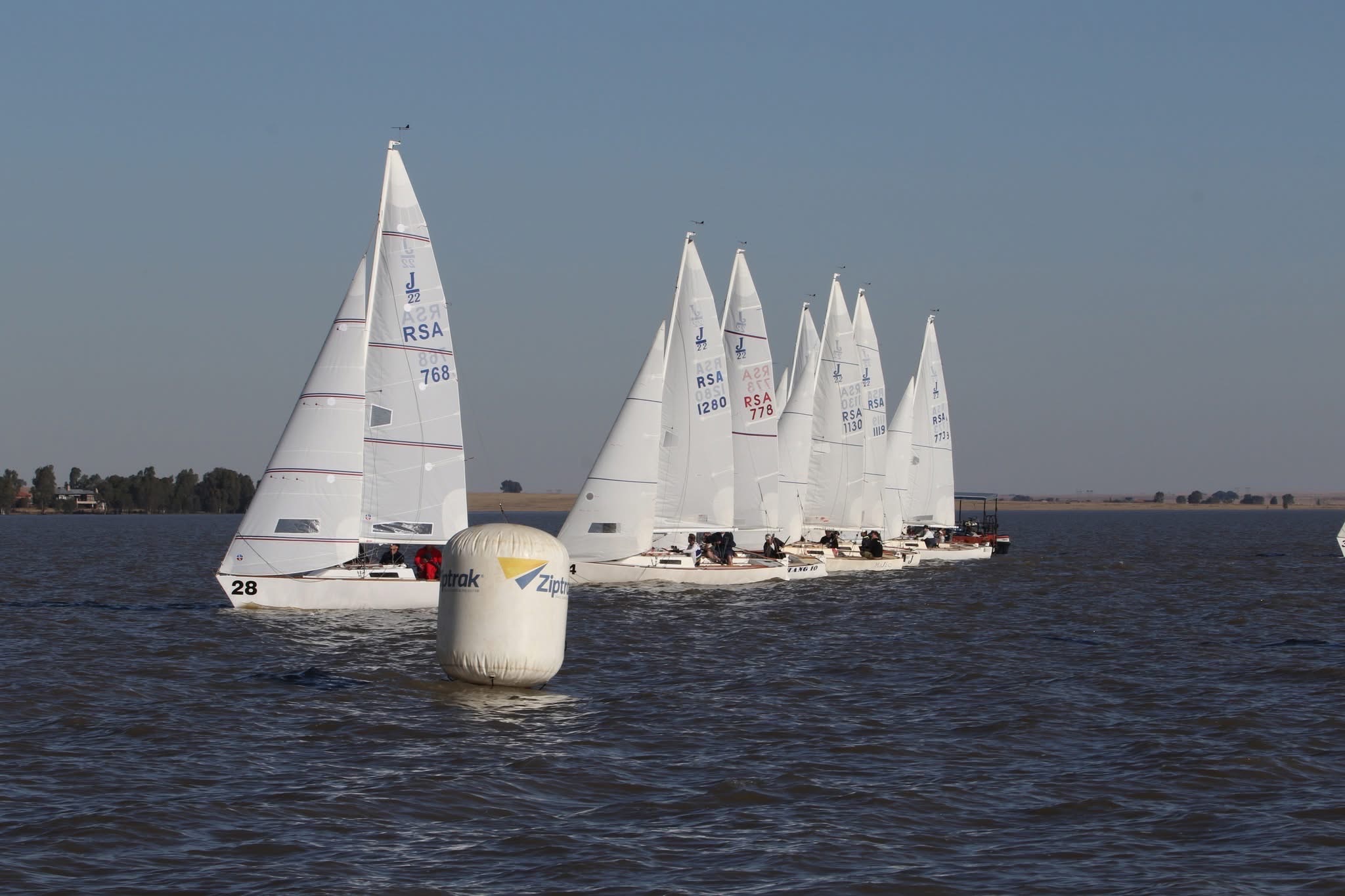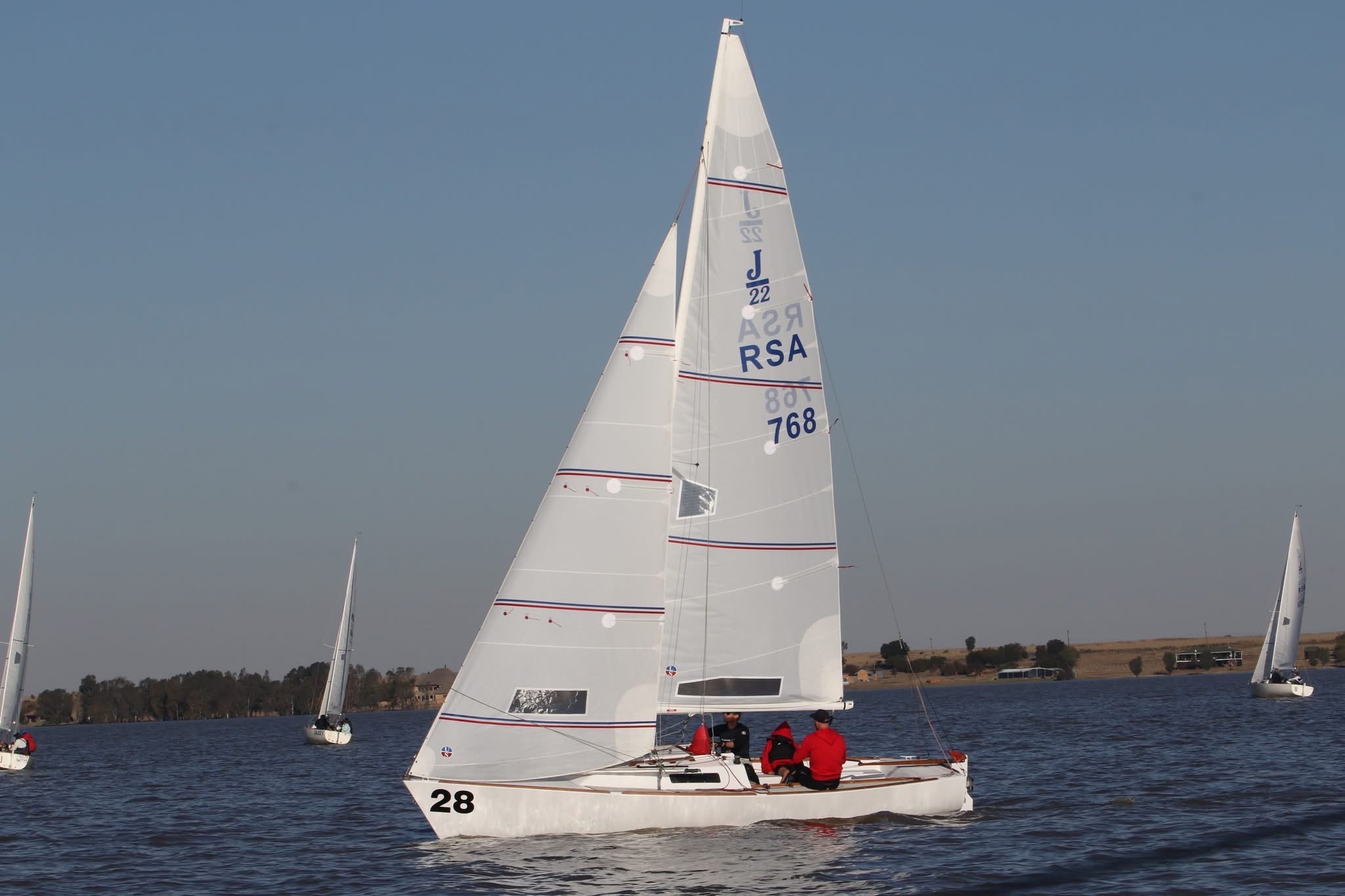 This year’s J22 Nationals had been up in the air, quite literally, for months. Back in December, it wasn’t even clear if the Vaal Dam would be able to host the event at all. Water levels were so low that none of the surrounding yacht clubs could launch keelboats. Then, as if on cue, Mother Nature changed her mind. The rain came, but didn’t stop. By the time May rolled around, the dam had too much water. Yacht clubs once again couldn’t launch, this time because their slipways were submerged or too dangerous to use.