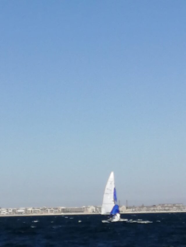 After crossing the line we tried again to free it. We kept sailing and trying, keeping the boat flat, but the kite would not come free. Eventually the chase boat came by and told us we would have to capsize the boat. The idea felt so wrong, but we had no choice.