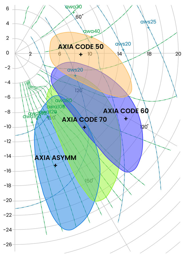 Axia Code 50,60,70 are cabled or active luffs. % represents mid-girth as % of foot length.